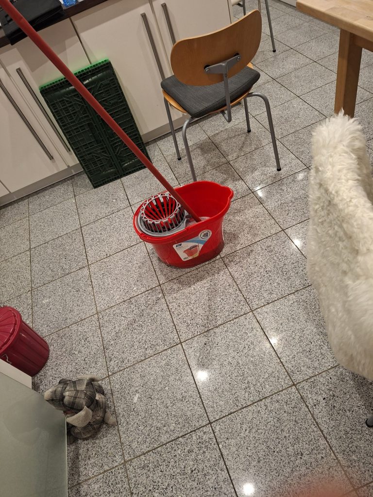 Weiter geht es mit ein bisschen Hausarbeiten, Küche und Bad werden geputzt.
