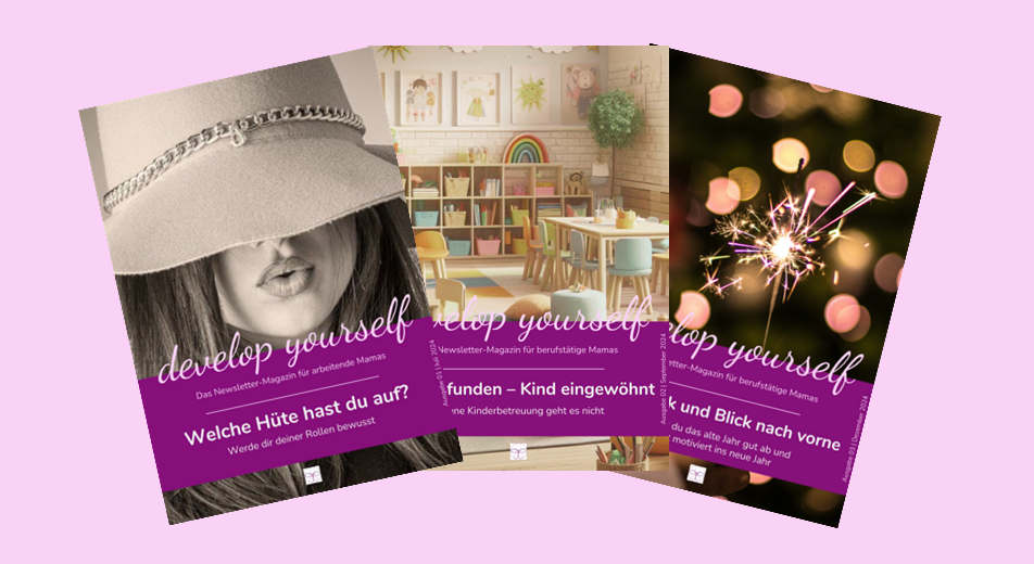 Wenn du dir gerne Tipps und Impulse rund um deinen Alltag als berufstätige Mama sichern möchtest, abonniere meine Newsletter-Magazin „develop yourself“. Darin gibt es Artikel zu Themen rund um Job und Karriere, Zeit- und Selbstmanagement und Tipps, wie du im vollen Alltag als berufstätige Mama noch Zeit für dich findest.